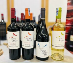 Trong đó thương hiệu Alto Vuelo là điểm nhấn. Đưa đến cho khách hàng chai rượu vang Alto Vuelo-Estate Series-Cabernet Sauvignon-2018. Chai rượu được sản xuất từ vùng Central Valley. Được xem là một chai rượu có giá cả và hương vị khá là phù hợp với người Việt Nam.