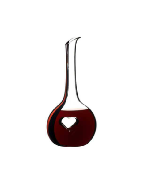 - Một biểu tượng của tình yêu, bình chiết rượu vang Riedel Decanter Bliss có thiết kế hình giọt nước với tâm điểm là hình trái tim ở giữa tâm giọt nước được ép 2 phần cạnh bình sát lại với nhau. Thiết kế sáng tạo này khi rót rượu vang vào bình rượu sẽ va đập mạnh vào phần trái tim và chảy quanh bình giúp rượu vang được nhảy múa và phát triển các tầng hương thơm. Giống như bộ sưu tập sản phẩm Black Tie, Bliss có một đường sọc đen đỏ dọc thân bình từ trên xuống dưới.
