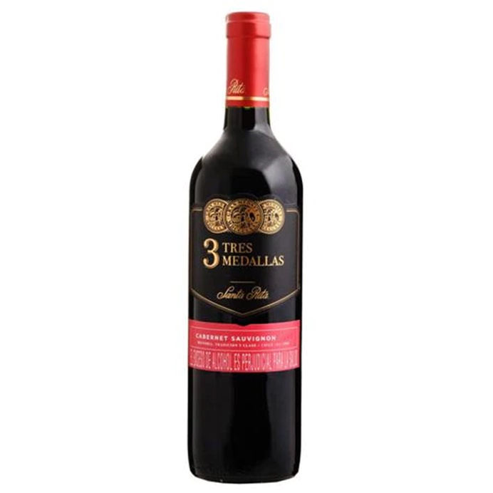 Rượu vang 3 Tres Medallas Cabernet Sauvignon có màu đỏ rất tươi sáng và sống động với ánh tím. Rượu được làm từ 100% Cabernet Sauvignon, rượu mang những hương thơm đặc trưng của trái cây chín mọng sim đen, việt quất, xen lẫn với hương thơm nồng nàn của trái cây đỏ như mận và mâm xôi với một chút vani, kẹo bơ cứng và caramel. Tannin vừa dịu dàng vừa mạnh mẽ, và kết thúc kéo dài, tươi mát và dai dẳng. Kết hợp với hương thơm của thuốc lá, cafe, socola cùng với một chút cay nhẹ của tiêu xanh. Mùi thơm của gỗ sồi Pháp, phảng phất trong khoang miệng. Trên vòm miệng cảm nhận vị các loại quả mọng đỏ với đặc trưng hương gỗ sồi nướng, dư vị mềm mại với hương gia vị cay cùng cấu trúc tannin tốt.