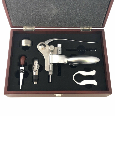 6 Piece Wood Boxed Wine Bottle Opener Corkscrew Set