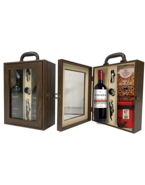 - 1 hộp gỗ nắp mica 02 chai
