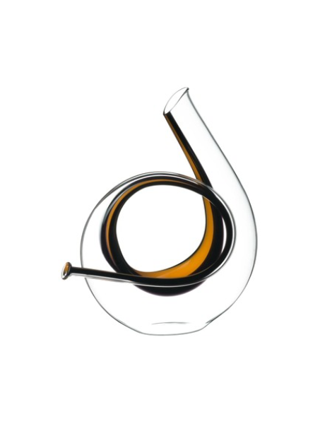 - Bình chiết rượu vang Riedel Decanter Mini RQ Horn được thiết kế theo hình dáng của chiếc kèn đồng Cor, biểu tưởng truyền thống gắn liền với di sản của gia đình Riedel ở Áo và Bohemia. Đồng thời, Horn được lấy cảm hứng từ biểu tượng của hệ thống chuyển phát thư tín nước Áo (Austrian Post’s). Giống nhiều loại Decanter có dáng cong của Riedel, Horn có 2 đầu thông nhau giúp tăng tốc độ sục khí của rượu vang. Đối với Horn trong quá trình thổi cần tới 3 người thợ chính để tạo ra tác phẩm nghệ thuật độc đáo này. Màu pha lê trong suốt của Horn được tạo điểm nhấn bằng dải màu vàng ở giữa và 2 dải đen bên cạnh trải theo đường cong của bình, đem lại một tổng thể sang trọng bậc nhất.