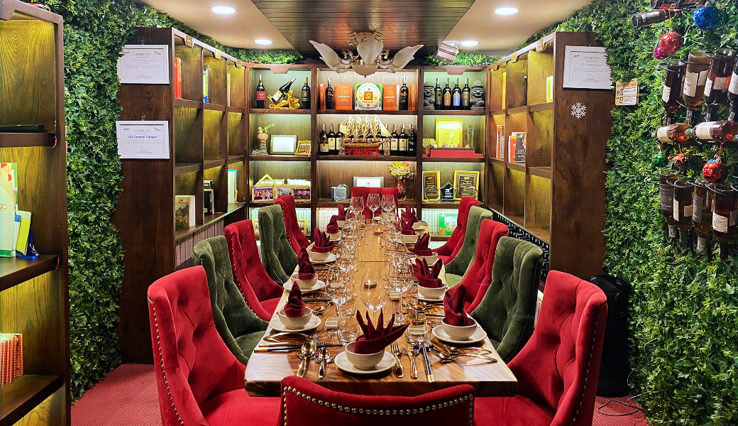 Đây được gọi là Toa số 1 của đoàn tàu Wine Train, một không gian thưởng thức rượu vang sang trọng, rộng rãi tối đa 35 khách.