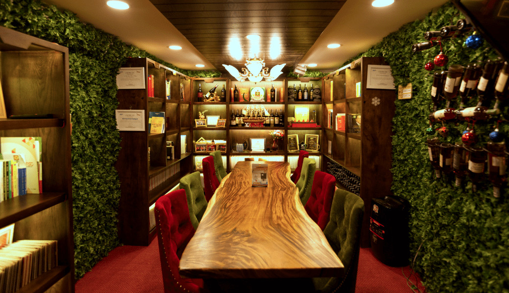 Đặc biệt tại Toa rượu hiếm trưng bày phòng rượu vang đặc biệt quý hiếm " NHẤT" thế giới.